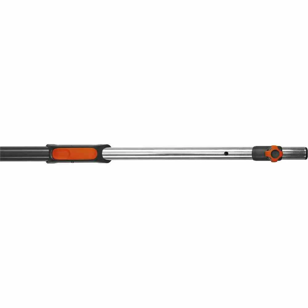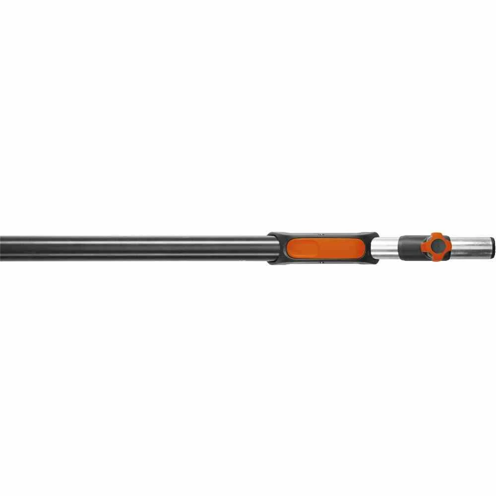Mit dem GARDENA combisystem Teleskopstiel arbeiten Sie ganz bequem in Höhen bis zu 6 Metern. Durch einen Schnappverschluss lässt sich der Teleskopstiel von 210 cm bis 390 cm ausziehen und so an die Arbeitssituation anpassen. Der Stiel besteht aus Aluminium und ist somit besonders leicht und stabil. Die Schraube zum Fixieren des combisystem Gerätes ist sicher angebracht, sodass ein Verlieren nicht möglich ist.