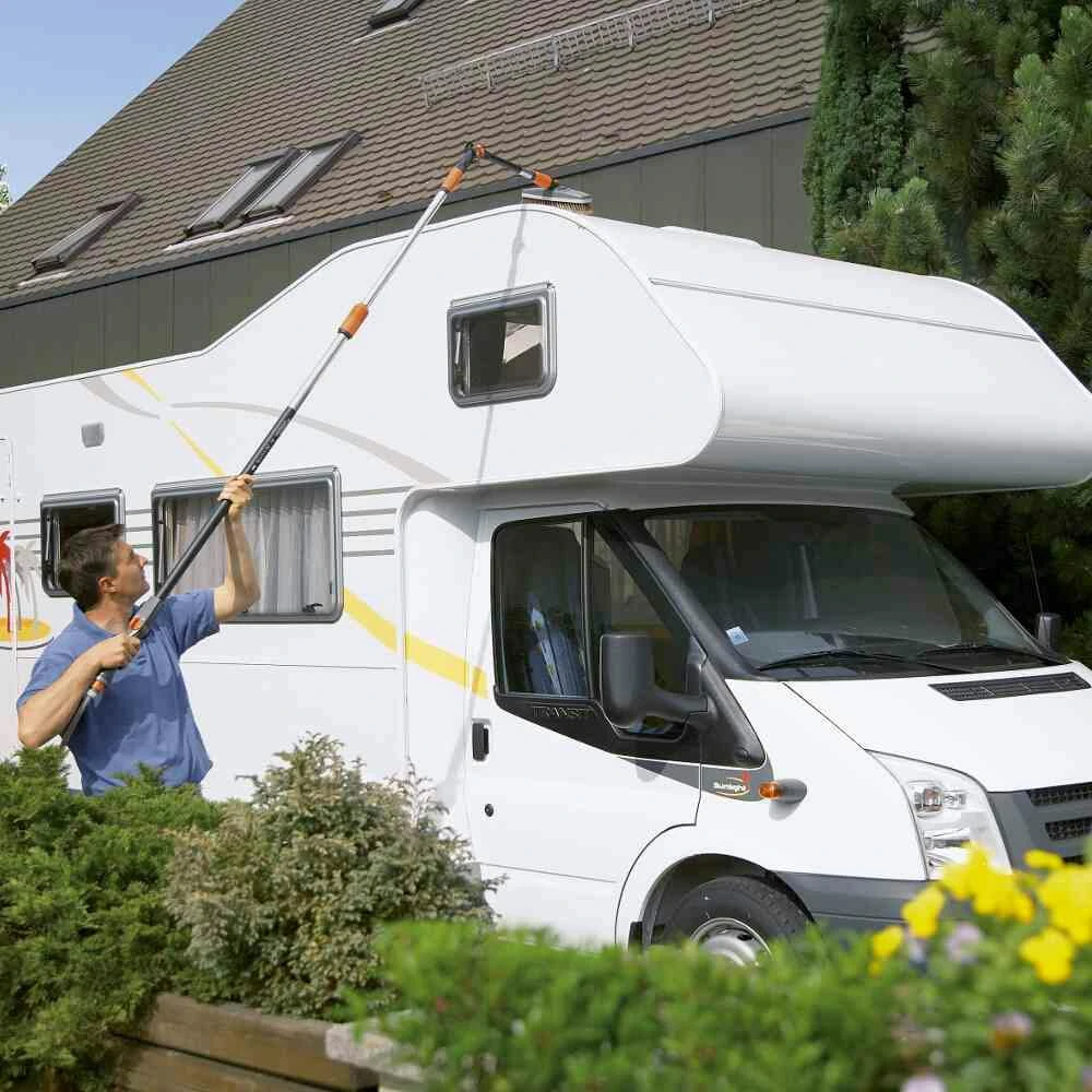 - Zur mühelosen Reinigung nicht einsehbarer, schwer erreichbarer Stellen (z.B. Dächer von Wohnmobilen, Wohnwagen oder Wintergärten)